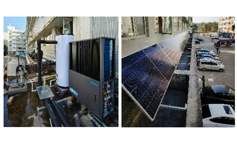 運行情況:機組采用光伏供電為主市電輔助,白天滿足辦公室空調需求的同時回收餘熱製備宿舍生活熱水,全年空調熱水節能率達80-90%